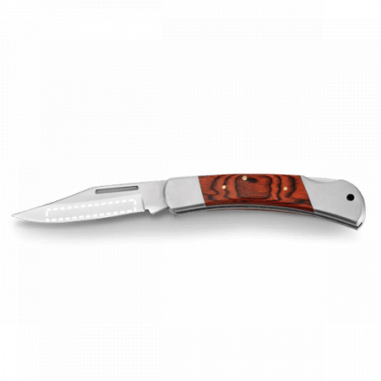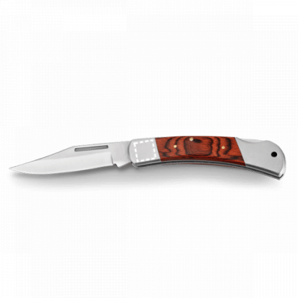 Pocket knife in stainless steel and wood with security lock. 110 x 19 x 30 mm