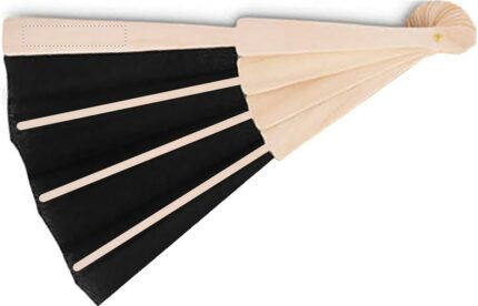 Manual hand fan in wood with polyester fabric.