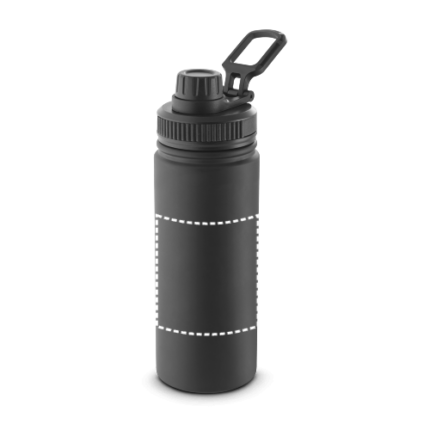 Double-walled bottle in (90% recycled) stainless steel and PP cap. The lid has a screw and a handle for easy transport. Capacity up to 570 mL. Supplied in a kraft paper gift box. ø73 x 227 mm