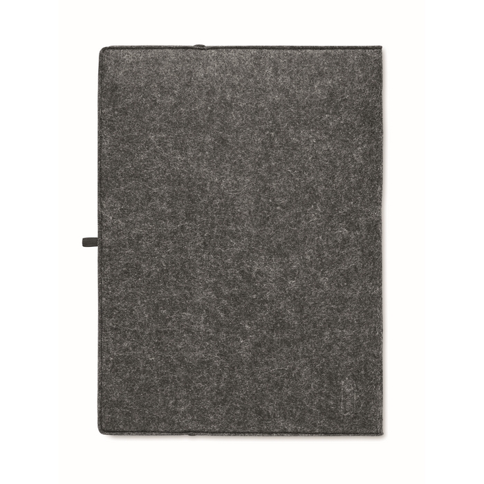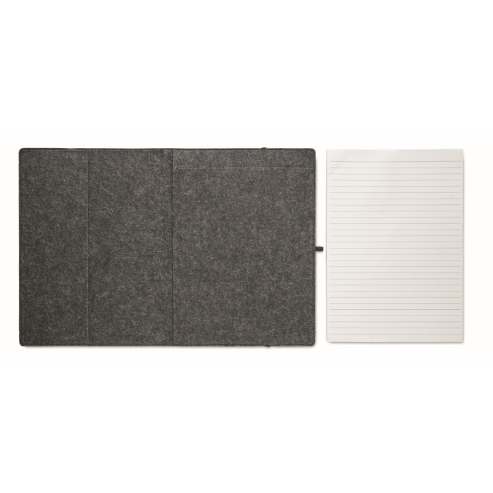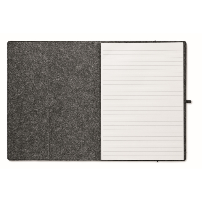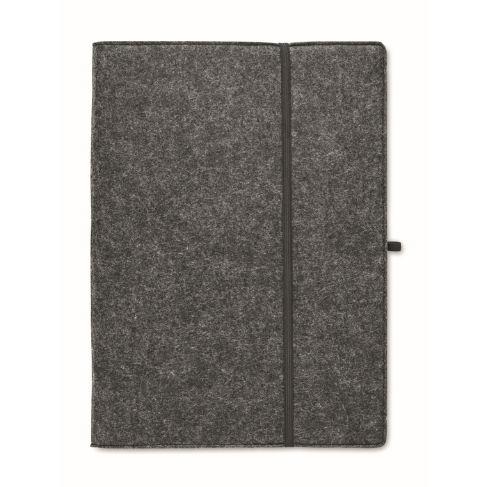 A4 conference folder in RPET felt. 100 lined sheets notepad with elastic pen holder.