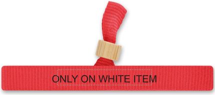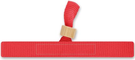 300D RPET polyester event wristband with bamboo ring closure. Wristband size 34 cm and 1,5 cm wide.