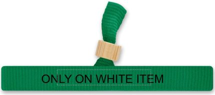 300D RPET polyester event wristband with bamboo ring closure. Wristband size 34 cm and 1,5 cm wide.
