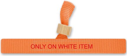300D RPET polyester event wristband with bamboo ring closure. Wristband size 34 cm and 1,5 cm wide.