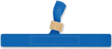 300D RPET polyester event wristband with bamboo ring closure. Wristband size 34 cm and 1,5 cm wide.