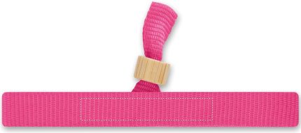 300D RPET polyester event wristband with bamboo ring closure. Wristband size 34 cm and 1,5 cm wide.