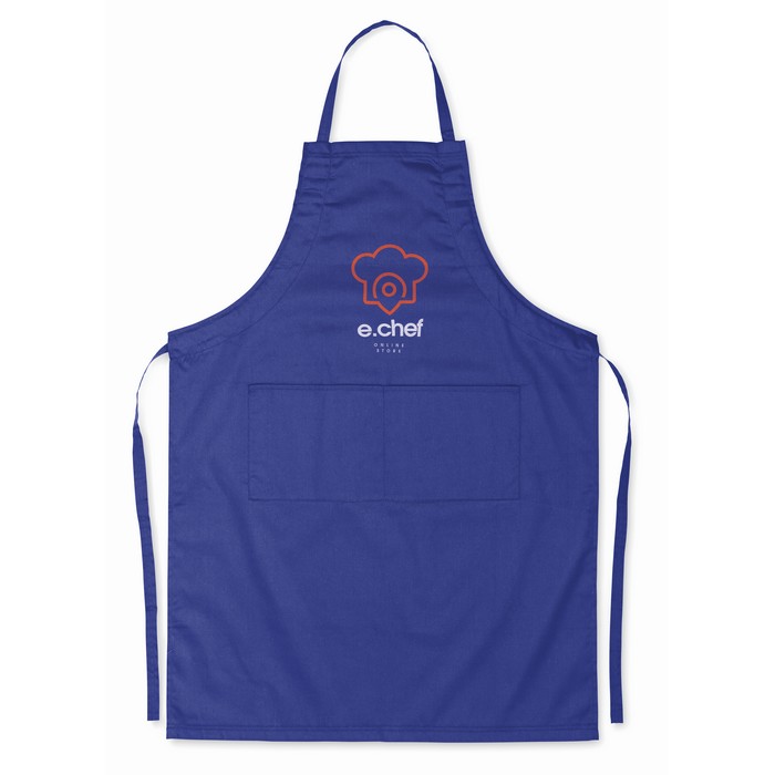 Adjustable kitchen apron with 2 front pockets in 10% cotton/90% polyester, 190gr/m².