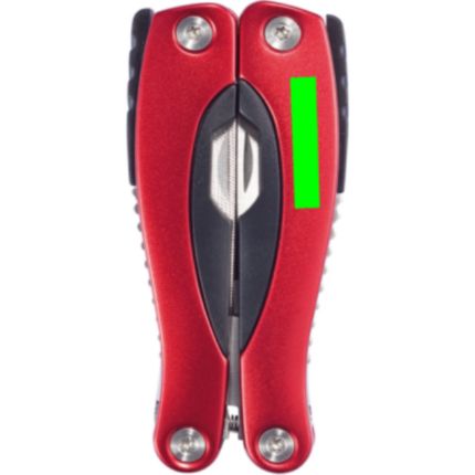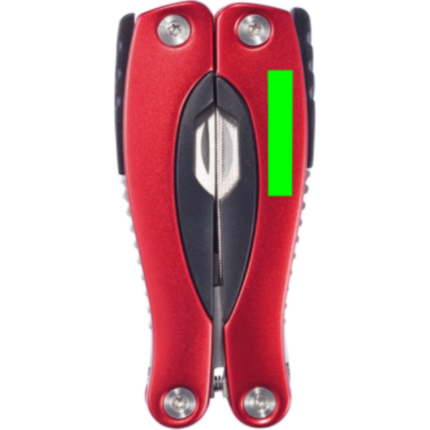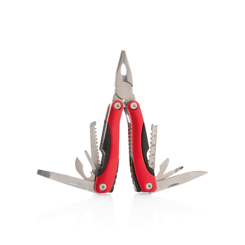 Aluminium multitool, handle with black details, 14 functions, packed in black 600D pouch.
