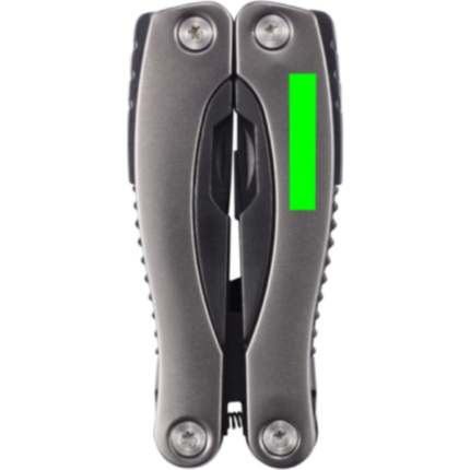 Aluminium multitool, handle with black details, 14 functions, packed in black 600D pouch.