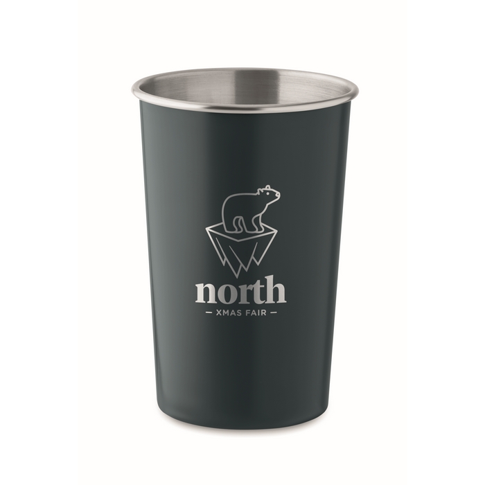 Reusable recycled stainless steel (90% recycled stainless and 10% stainless steel) cup. Capacity: 350 ml.