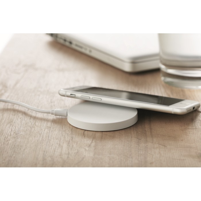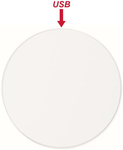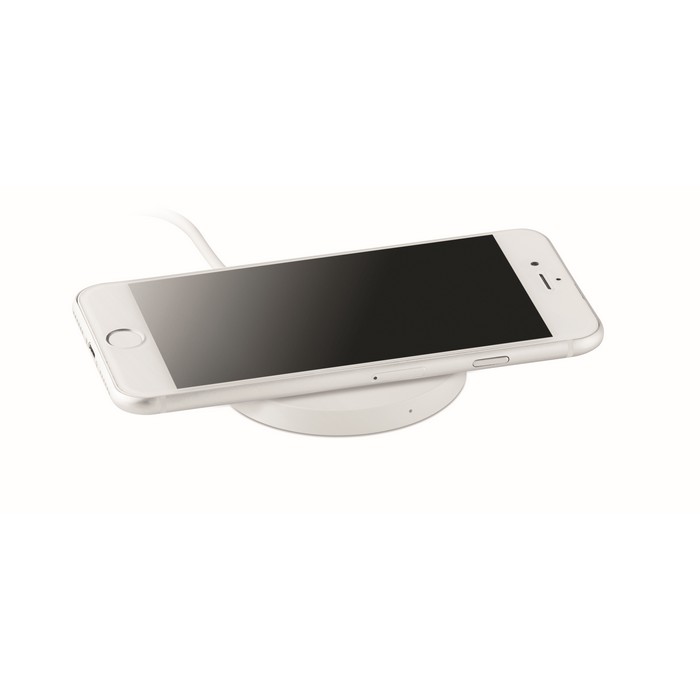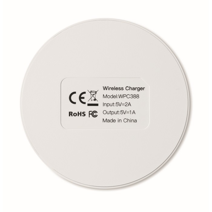 Wireless charger. Connect device to your computer, place smartphone on device to commence charging. Output: DC5V/1A (5W). Compatible latest androids, iPhone® 8, X and newer. Ideal for full colour personalisation.