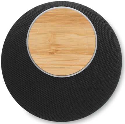 5.0 wireless speaker in ABS case and bamboo on top. It also has a built-in 10W wireless charger to charge your smartphone and 4000 mAh power bank. Output DC 9V/1.1A.