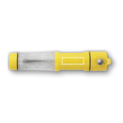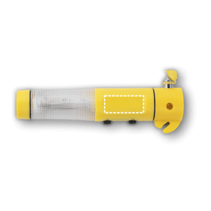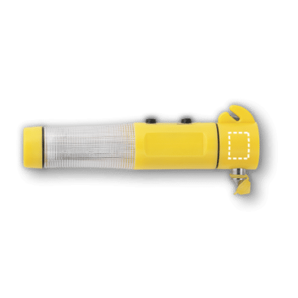 Emergency hammer with magnet, car seat belt cutter and flashlight with 1 white LED and 3 red LEDs. Includes 2 AA batteries. This product supplied in a box. ø38 x 193 mm
