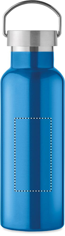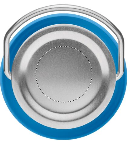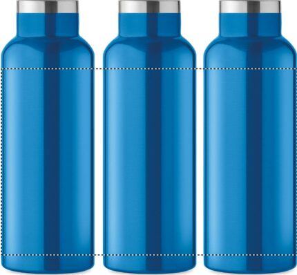 Double wall insulating vacuum bottle in recycled stainless steel (90 % recycled stainless steel and 10% stainless steel) with lid with handle. Leak-free. Capacity: 500 ml.