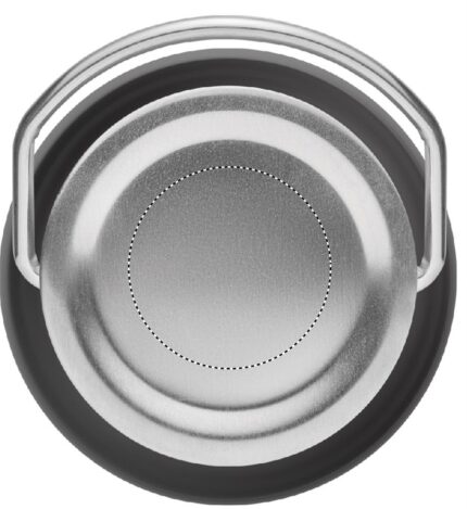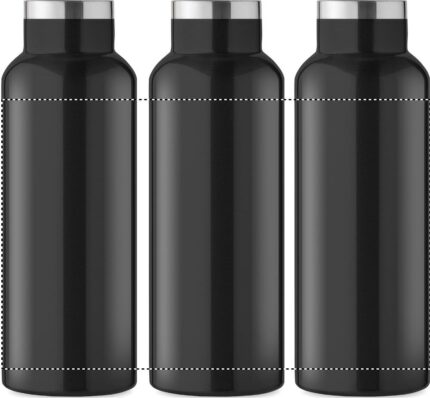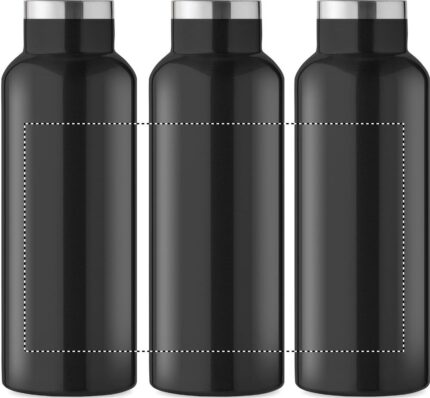 Double wall insulating vacuum bottle in recycled stainless steel (90 % recycled stainless steel and 10% stainless steel) with lid with handle. Leak-free. Capacity: 500 ml.