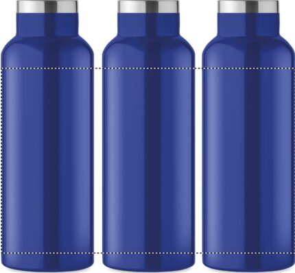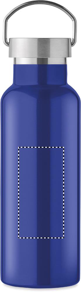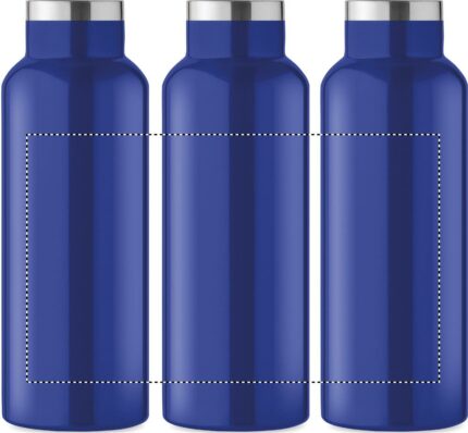 Double wall insulating vacuum bottle in recycled stainless steel (90 % recycled stainless steel and 10% stainless steel) with lid with handle. Leak-free. Capacity: 500 ml.