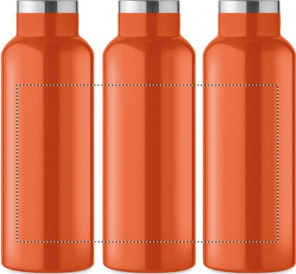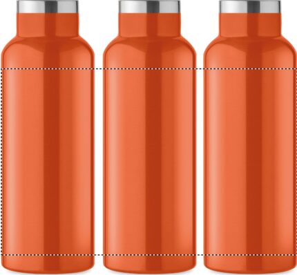 Double wall insulating vacuum bottle in recycled stainless steel (90 % recycled stainless steel and 10% stainless steel) with lid with handle. Leak-free. Capacity: 500 ml.