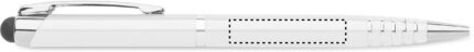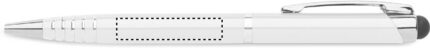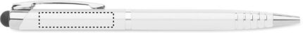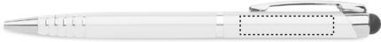 Twist action ball pen in recycled aluminium with stylus. Blue ink.