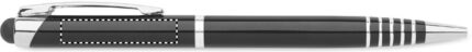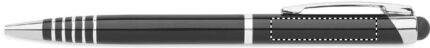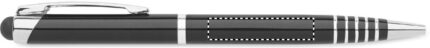 Twist action ball pen in recycled aluminium with stylus. Blue ink.