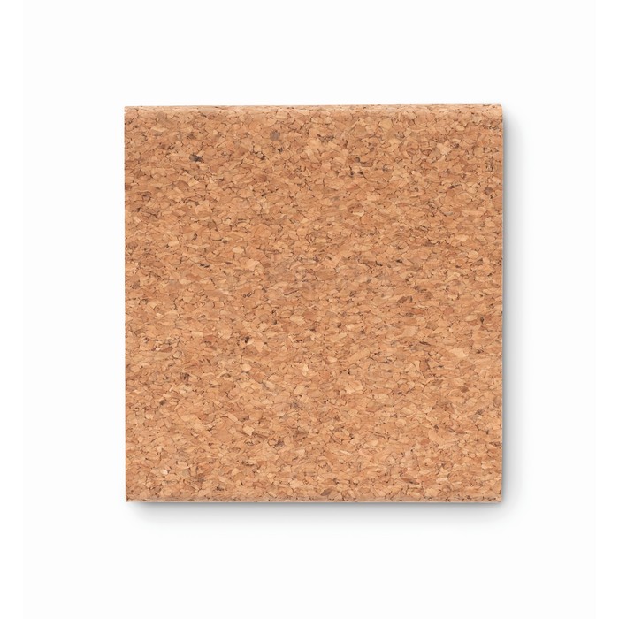 Sticky note memo pad with cork envelope cover. 125 sheets of large yellow sticky notes pads and 25 sheets of 5 assorted colours page markers. Cork is 100% natural material. Due to its structural nature and surface porosity the final print result per item may have deviations.