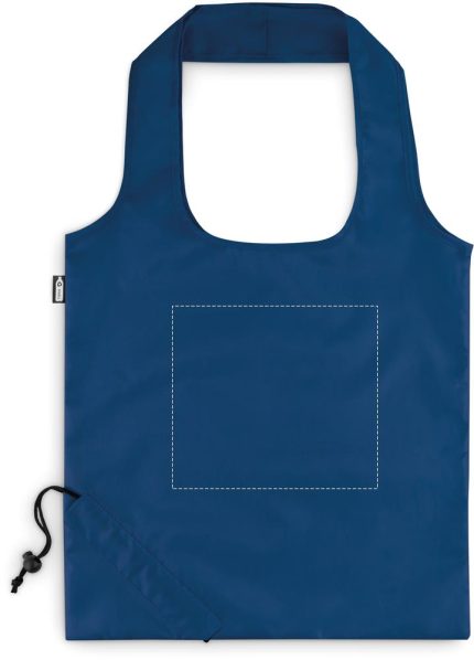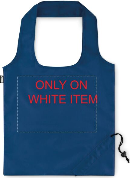 Foldable shopping bag in 190T RPET with drawstring closure on pouch. Sublimation print available on white item only.