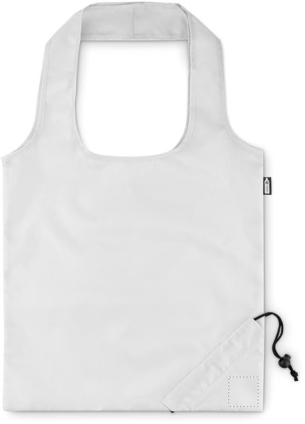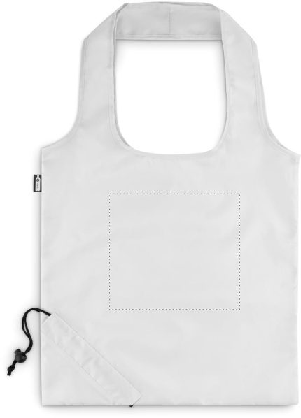 Foldable shopping bag in 190T RPET with drawstring closure on pouch. Sublimation print available on white item only.