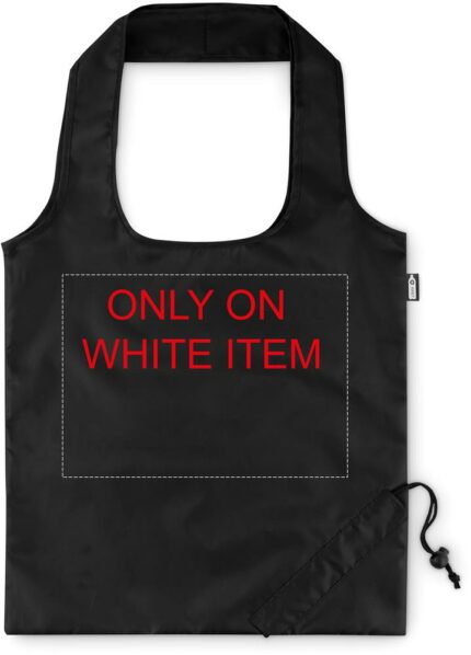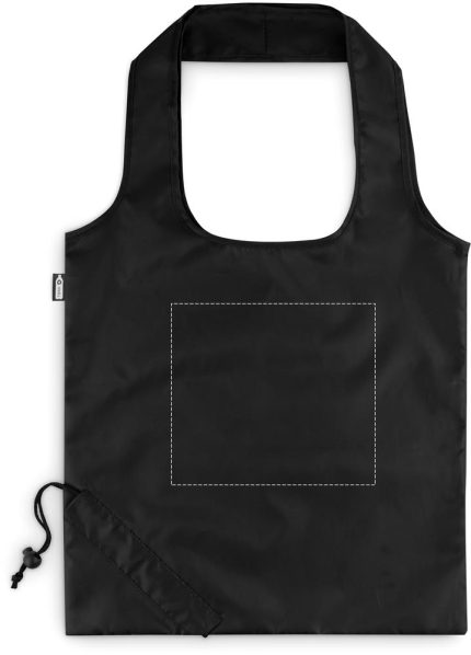 Foldable shopping bag in 190T RPET with drawstring closure on pouch. Sublimation print available on white item only.