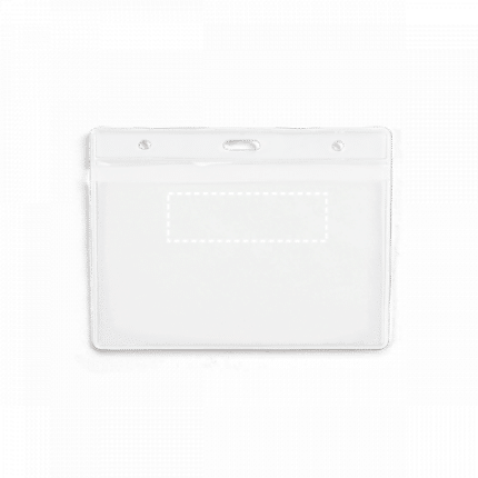 Horizontal badge holder in PVC. This badge holder has holes that allow the use of a carabiner. 110 x 90 mm