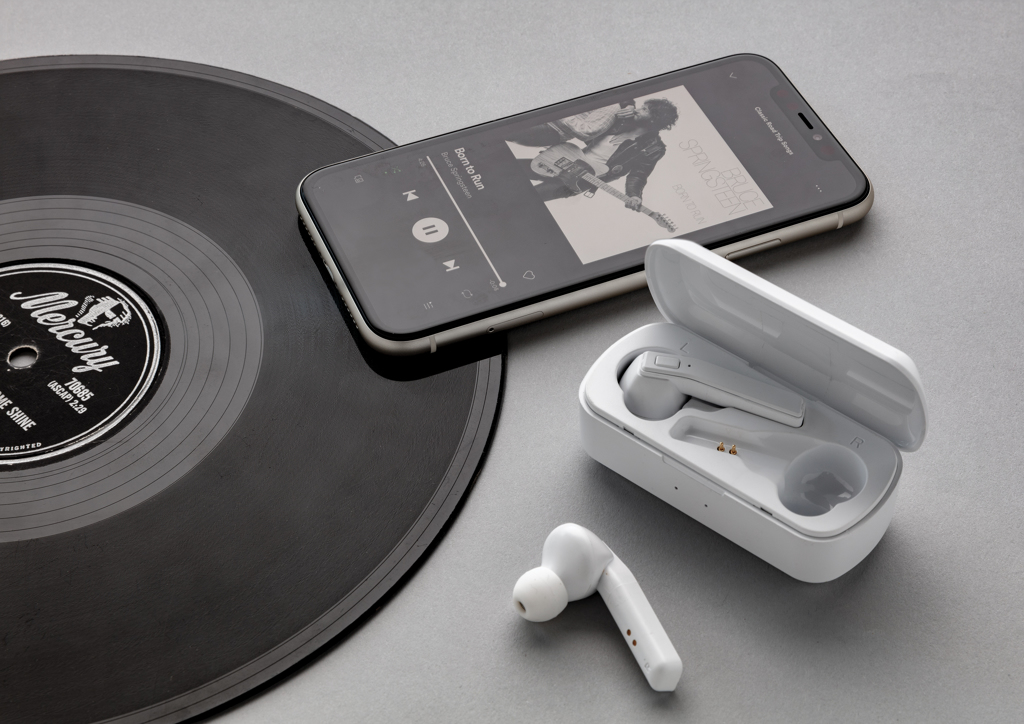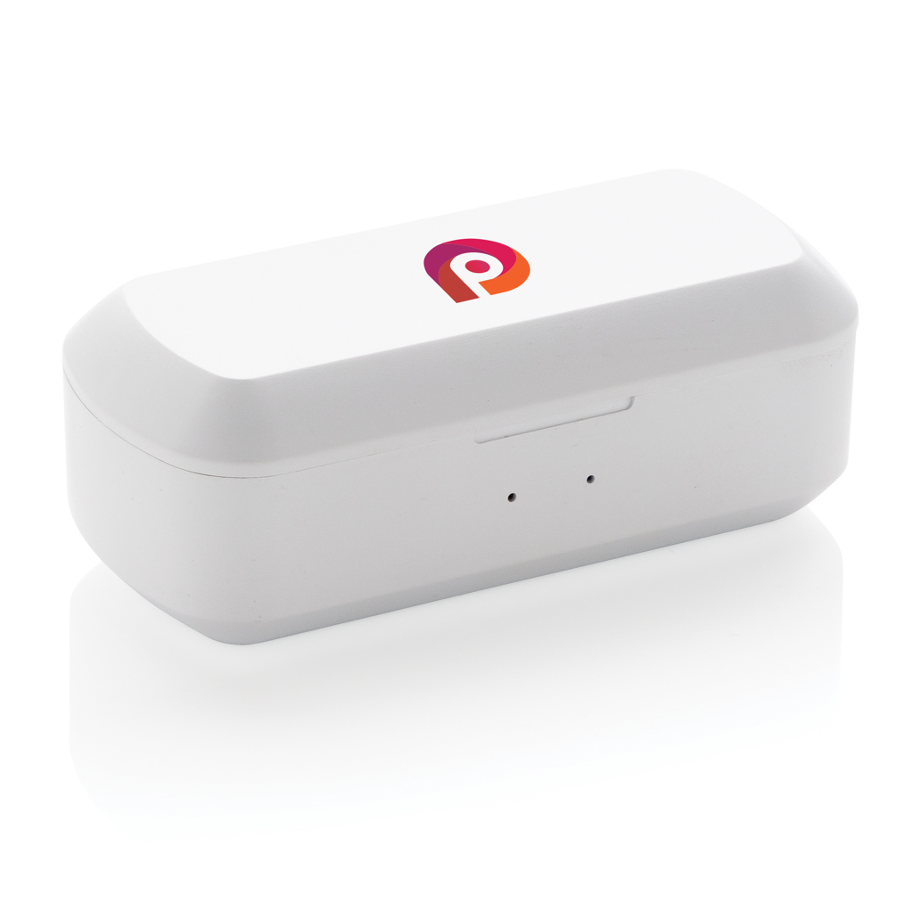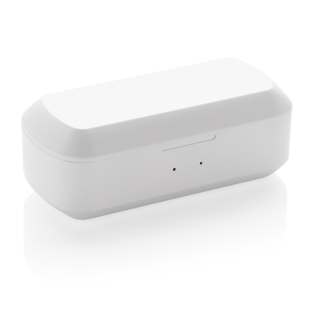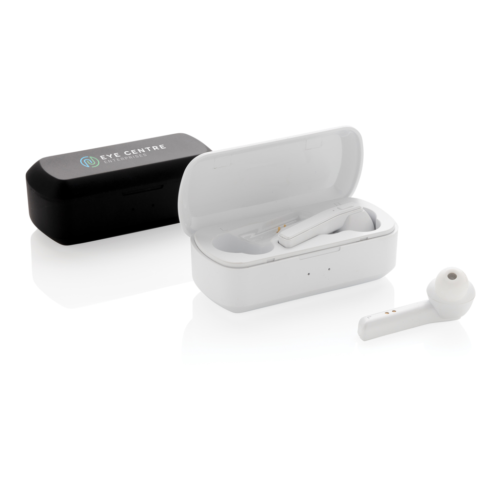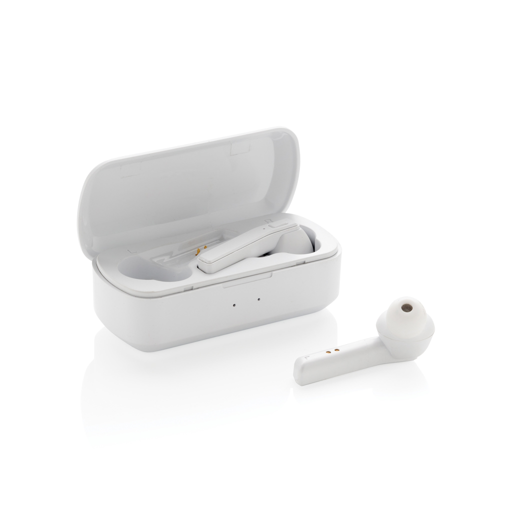 Let the music flow with these true wireless earbuds in charging case. The earbuds have a 35 mAh battery and can be re-charged in the 500 mAh charging case within 1 hour. With auto pairing function so easy to pair to your mobile device. Playing time on medium volume about 3 hours. With BT 5.0 for optimal connection. Operating distance up to 10 metres. With pick up and mic. Including 3 size silicone ear tips. ABS material casing.