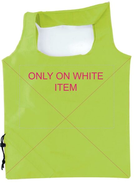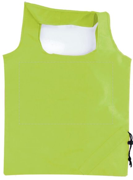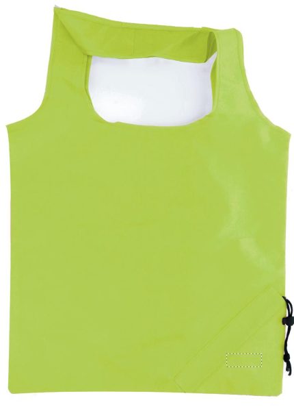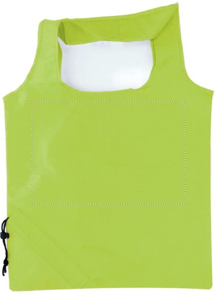 Foldable shopping bag in 210D polyester with drawstring closure on pouch.