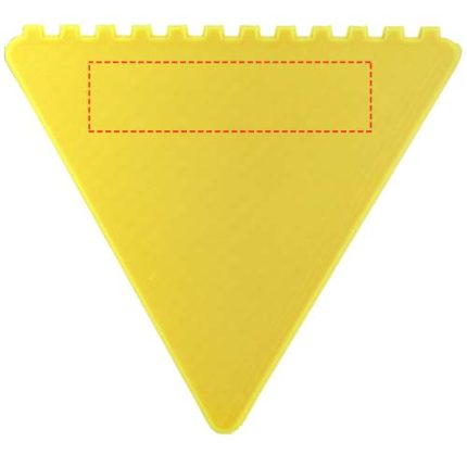 Triangular-shaped windshield scraper with a large decoration area. Each of the 3 sides can be used to remove ice from the windshield. Made in the UK from recycled plastic. The ice scraper has a speckled finish due to the nature of the recycled material.