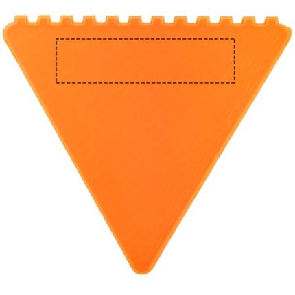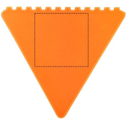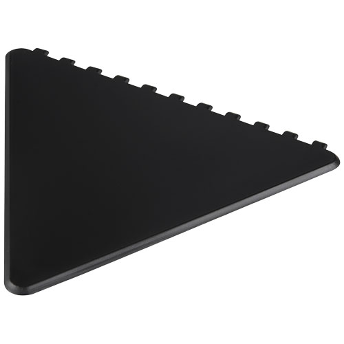 Triangular-shaped windshield scraper with a large decoration area. Each of the 3 sides can be used to remove ice from the windshield. Made in the UK from recycled plastic. The ice scraper has a speckled finish due to the nature of the recycled material.