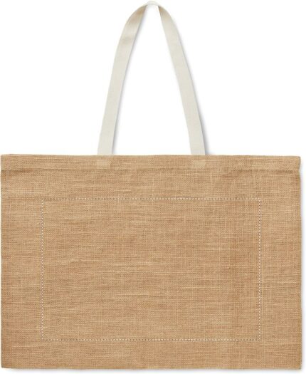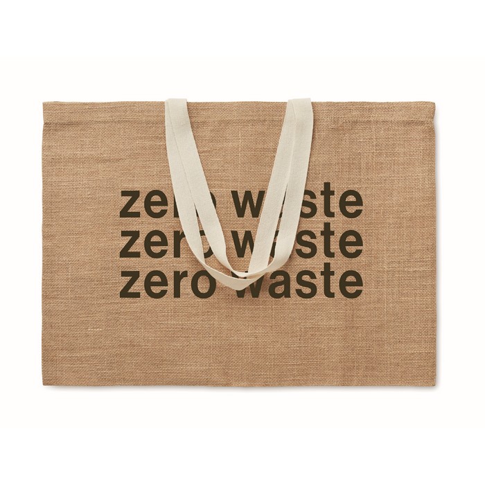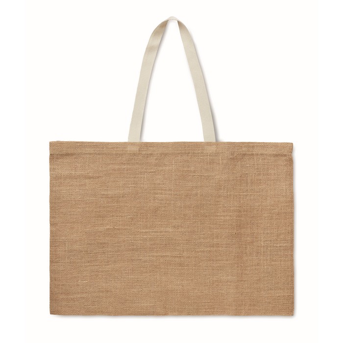 Jute laminated shopping bag with cotton handle. Long handles.