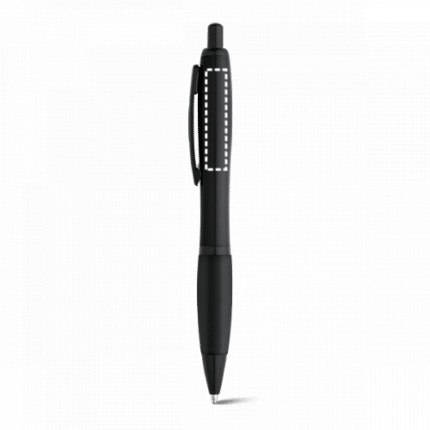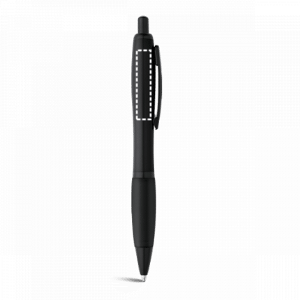 Metal ball pen clip, black trim and non-slip grip, available in several colours. Blue ink. ø12 x 140 mm