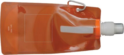 Foldable water bottle in PET which is BPA free with aluminium carabiner. Capacity 480 ml. Leak free.