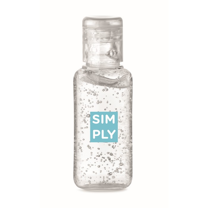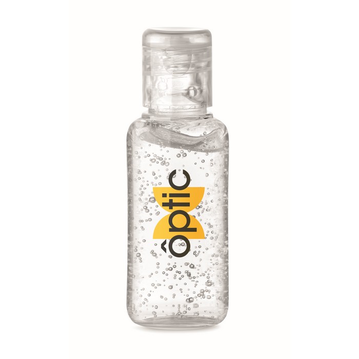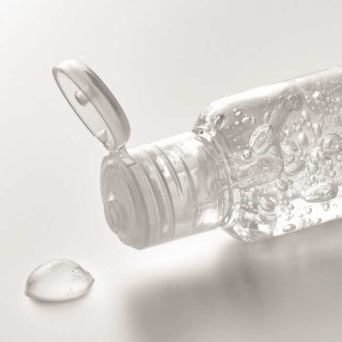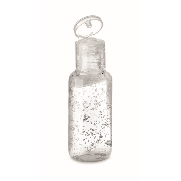 Hand cleanser gel in PET refillable bottle with flip-cap. Capacity 50ml. 70%-alcohol formulation. Made in EU. This product is classified as a cosmetic item.
