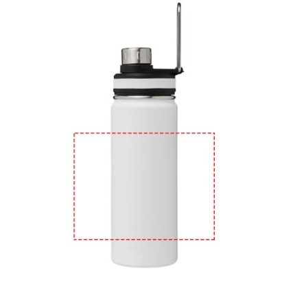 Double-walled stainless steel vacuum construction with copper insulation, which keeps beverages hot for at least 12 hours and cold for 48 hours. The construction also prevents condensation on the outside of the bottle. Features a screw-on top and stainless steel lid with a convenient handle for carrying. Dual opening construction for easy cleaning and filling. Volume capacity is 590 ml. Presented in an Avenue gift box.