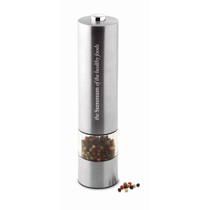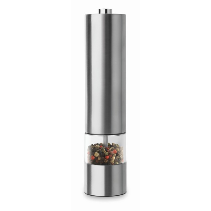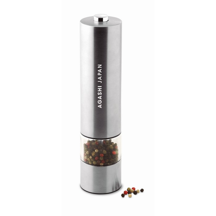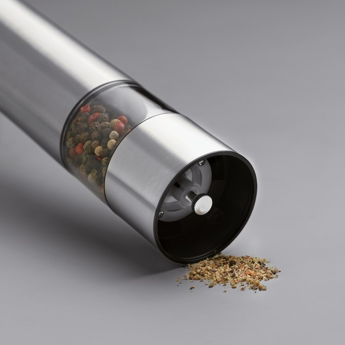Stainless steel electric salt or pepper mill. 4 AA batteries required (not included)
