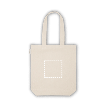 Cotton (50%) and recycled cotton (50%) bag (220 g/ m²) with 60cm handles. 380 x 400 x 100 mm