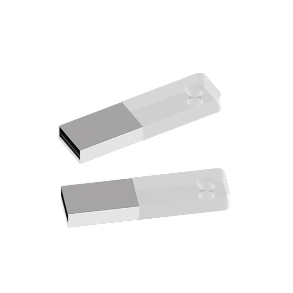 USB με φουτουριστικό σχεδιασμό. Λόγω της κατασκευής του από διαφανές πλαστικό και μέταλλο αυτό το usb stick μοιάζει με γυάλινο. Το εσωτερικό τμήμα του διαφανούς τμήματος διαθέτει μια λυχνία LED που ανάβει όταν η μονάδα flash είναι συνδεδεμένη στον υπολογιστή, ενισχύοντας έτσι οποιαδήποτε λογότυπα ή εικόνες γραφικών στην εν λόγω επιφάνεια. Πρόκειται για ένα πολύ κομψό διαφημιστικό δώρο στο οποίο μπορούμε να προσαρμόσουμε το λογότυπό σας.