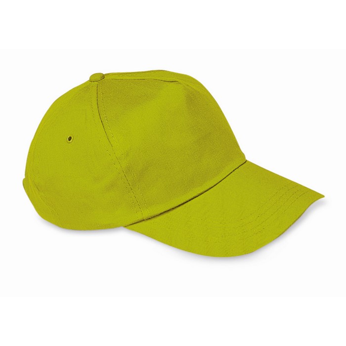 5 panels baseball cap in cotton twill 160 gr/m2 with adjustable plastic snap closure. 2 metal eyelets with matching color plating. Size 7 1/4.