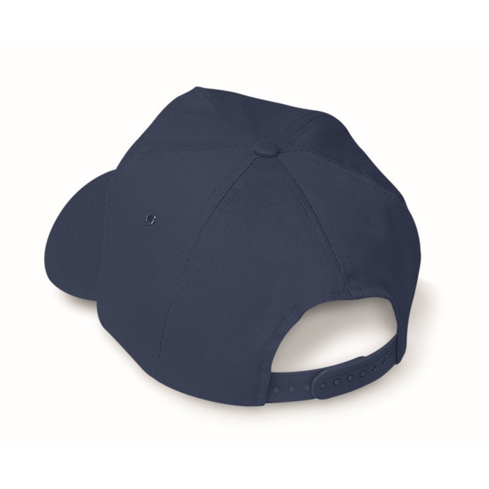 5 panel baseball cap in cotton twill ,160 gr/m² with adjustable plastic snap closure. 2 metal eyelets with matching colour plating. Size 7 1/4.