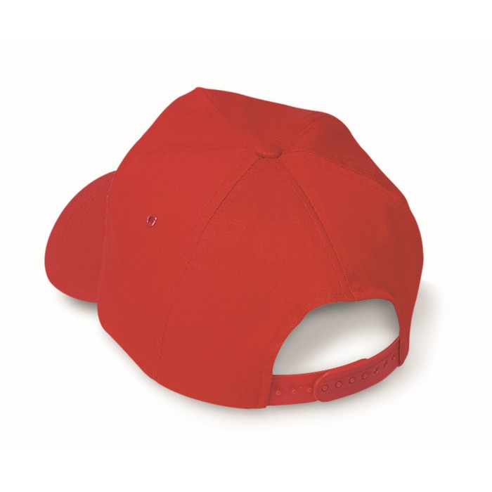 5 panel baseball cap in cotton twill,160 gr/m² with adjustable plastic snap closure. 2 metal eyelets with matching colour plating. Size 7 1/4.