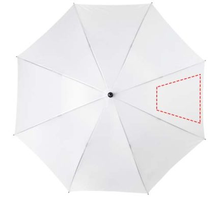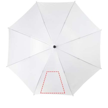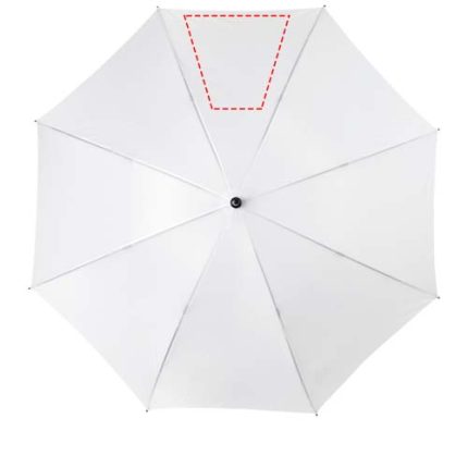 Golf umbrella with a polyester canopy fitting 2 persons. It has a sturdy metal shaft and a high quality full fiberglass frame, offering maximum flexibility in windy conditions. Curved EVA handle, plastic tips and top. Available in a wide variety of contemporary colours and has a large decoration area on each of the panels.
