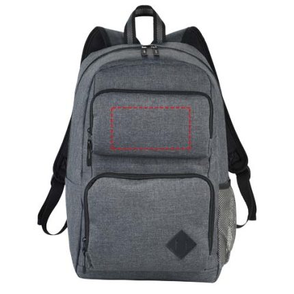 Zipped main compartment with padded laptop sleeve holds up most 15.6″ laptops and has a dedicated tablet pocket with room for all your other business essentials. The two front pockets offer flexible decorating locations and are large enough for power banks, cables, and other essentials. The side pocket offers additional storage. Adjustable padded backpack straps and top grab handle. There may be minor variations in the colour of the actual product due to the nature of the fabric dyes, weaves, and printing.