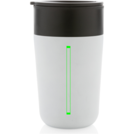 This GRS Recycled PP and stainless steel mug is spillproof and the lid with sliding closure makes this modern mug perfect for enjoying your favourite beverages on the go. Made with GRS certified recycled materials. The inner, lid and handle of the bottle is made from 100% GRS certified PP. GRS certification ensures a completely certified supply chain of the recycled materials. Total recycled content: 60% based on total item weight. BPA free. Capacity 480ml. Including FSC®-certified kraft packaging.