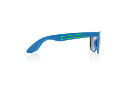 Sunglasses made with GRS certified recycled PP frame. Recycled content of frame is 100%. Total recycled content: 66% based on total item weight. GRS certification ensures a completely certified supply chain of the recycled materials. The lenses are smokey acrylic and conform EN ISO 12312-1,UV 400 and CAT 3. Packed in a FSC® kraft sleeve.