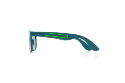 Sunglasses made with GRS certified recycled PP frame. Recycled content of frame is 100%. Total recycled content: 66% based on total item weight. GRS certification ensures a completely certified supply chain of the recycled materials. The lenses are smokey acrylic and conform EN ISO 12312-1,UV 400 and CAT 3. Packed in a FSC® kraft sleeve.