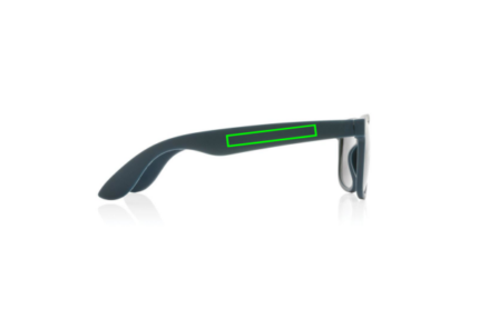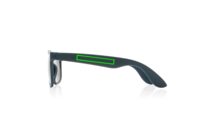 Sunglasses made with GRS certified recycled PP frame. Recycled content of frame is 100%. Total recycled content: 66% based on total item weight. GRS certification ensures a completely certified supply chain of the recycled materials. The lenses are smokey acrylic and conform EN ISO 12312-1,UV 400 and CAT 3. Packed in a FSC® kraft sleeve.