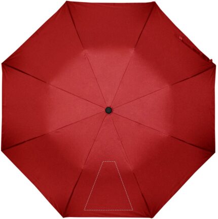 21 inch 2 fold auto open umbrella in 190T pongee with zinc plated steel shaft, ribs and tips. Black rubberised ABS handle. Includes matching pouch. Manual closure.