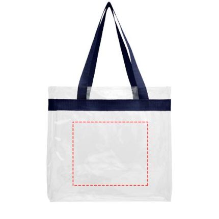 This clear tote is perfect for fans packing their stadium and event day items safely. Also great for work or school safety. Open main compartment with sporty webbing trim and dual carrying handles. Drop down height handles 27 cm. Accessories not included. Resistance up to 10 kg weight.